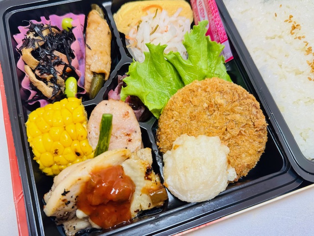 1月の幕の内メニュー 1月のかまどご飯の彩り幕の内 【メニュー】 チキンステーキ炭火焼サルサソース メンチカツ フランクフルト炭火焼 もちもち揚げえび餃子 野菜肉巻き 京風出し巻き 本日の煮物 本日のあえ物 焼野菜 香物他